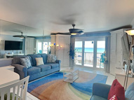 Whispering Seas 204 is a Gulf-front 1BR/1BA 2nd floor condo that sleeps 5 w/King and Twin beds in bedroom and sleeper sofa in living room. Fully equipped and updated kitchen and dining table that seats four. Gulf-front Balcony; Wi-Fi, Pool on Beach. Washer/Dryer in unit. |